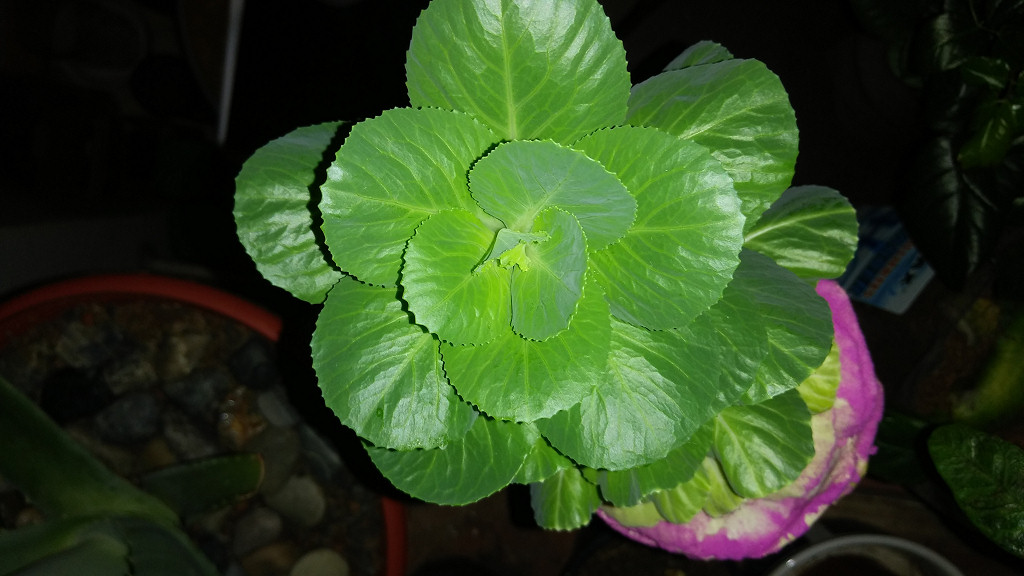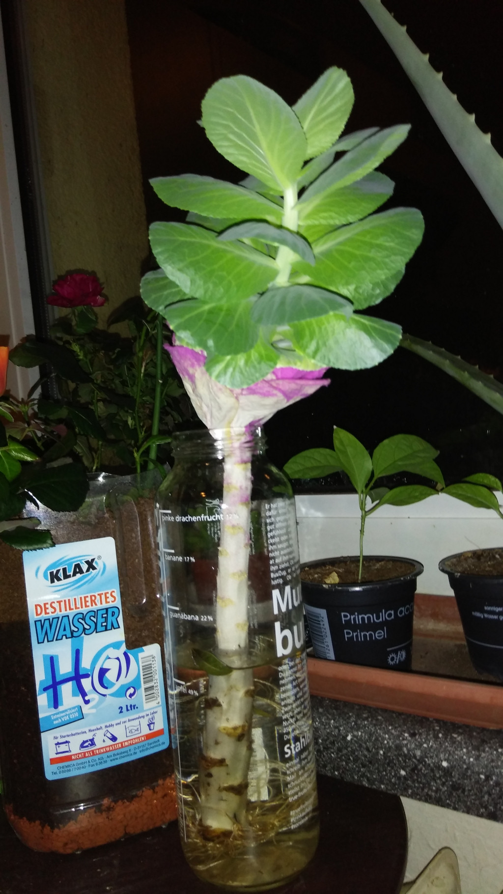 Ich hab mal wieder zwei Unbekannte. Nummer 1, Die Pflänzchen im Topf hab ich heute geschenkt bekommen und Grünzeug Nummer 2, das mich irgendwie immer an Kohl oder ähnliches Gemüse erinnert, ist die letzte Überlebende aus einer Art Weihnachts-Blumenstrauß und hat wie bekloppt gewurzelt. Ist auch durch die Lichtverhältnisse etc schon ziemlich aus der Form geraten wie man sieht.
