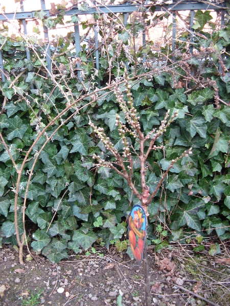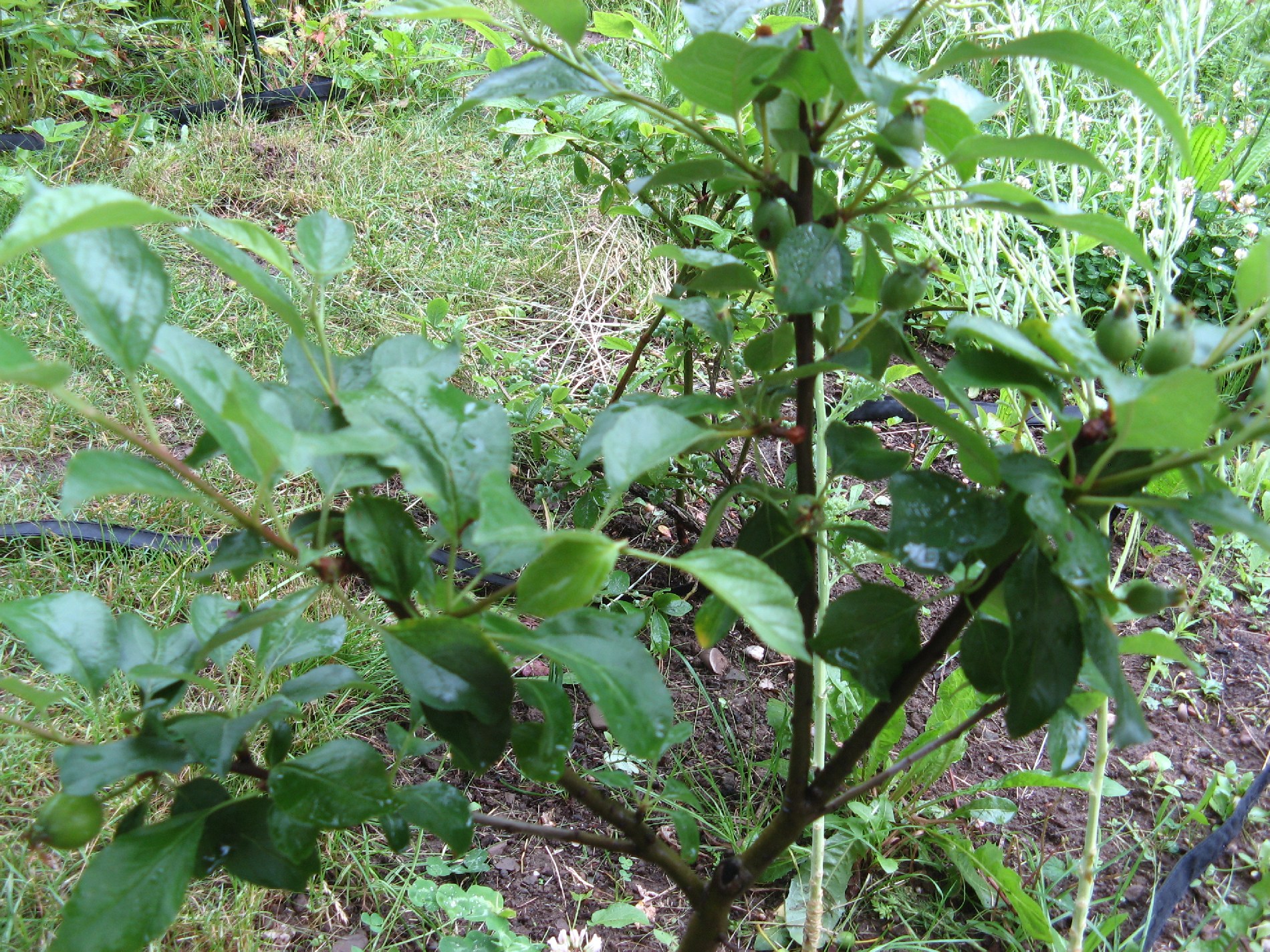 Einer (Nr. 2) kommt jetzt ins dritte Jahr, der andere (Nr. 1) ins 2. Standjahr. Beide hatten noch keine Früchte, geschweige denn Blüten - nur Knospen.