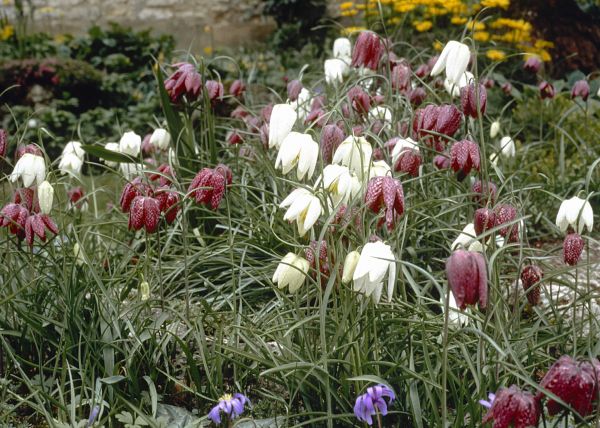 Eine später blühende Zwiebelblume, die gut im lichten Schatten unter bereits ausgetriebenen Bäumen gedeiht, ist das Spanische Hasenglöckchen (Hyacinthoides hispanica). An den etwa 30 cm langen Blütenstängeln befinden sich zahlreiche kleine Glockenblüten. Diese im April und Mai blühende Zwiebelblume wird manchmal auch als Spanischer Blaustern bezeichnet. Der Name täuscht, denn es gibt nicht nur Sorten mit blauen, sondern auch mit weißen oder zartrosafarbenen Blüten. Im gleichen Zeitraum blüht auch die Schachbrettblume (Fritillaria meleagris), die ebenfalls an sonnigen bis halbschattigen Standorten gedeiht.