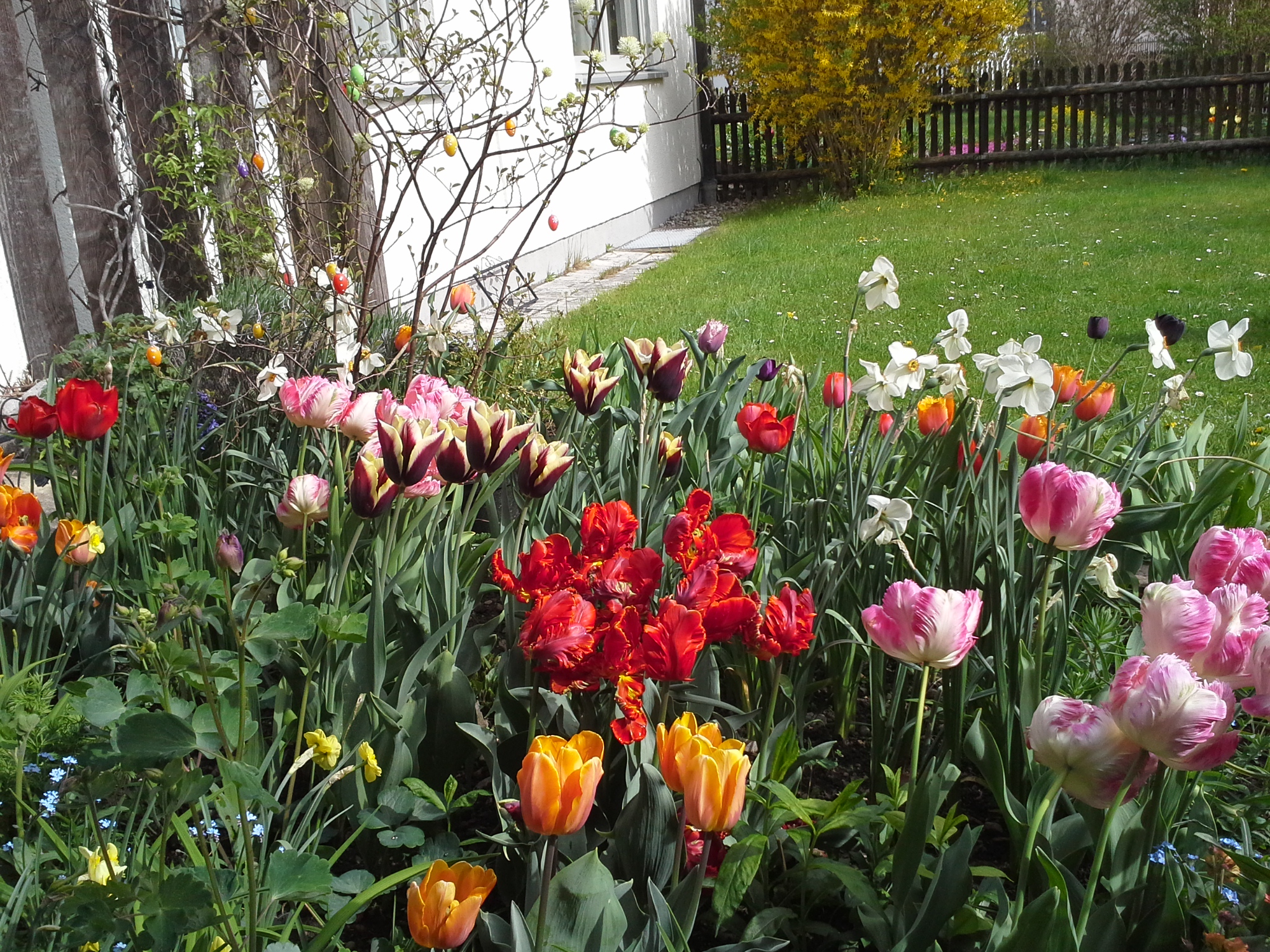 Hey Daylily! Die Sorte, wo du "kleinblütig gefüllt Mix" drunter stehen hast heißt "Brydal Crown". Die sind schön. Ich habe mir dieses Jahr auch eine Schale davon gekauft. Leider halten sich Osterglocken bei uns nicht. Das liegt wohl am Boden. Früher war hier Moor. Bei meinen Eltern, die nur etwa 4 km von uns weg wohnen, wachsen & blühen die wie doof & versamen sich auch überall hin. Dabei haben die reinen "Karnickelsand", der sehr schnell austrocknet & z.B. einen Gemüsegarten zur vergeblichen Liebesmüh macht. Aber Osterglocken scheinen das zu mögen.