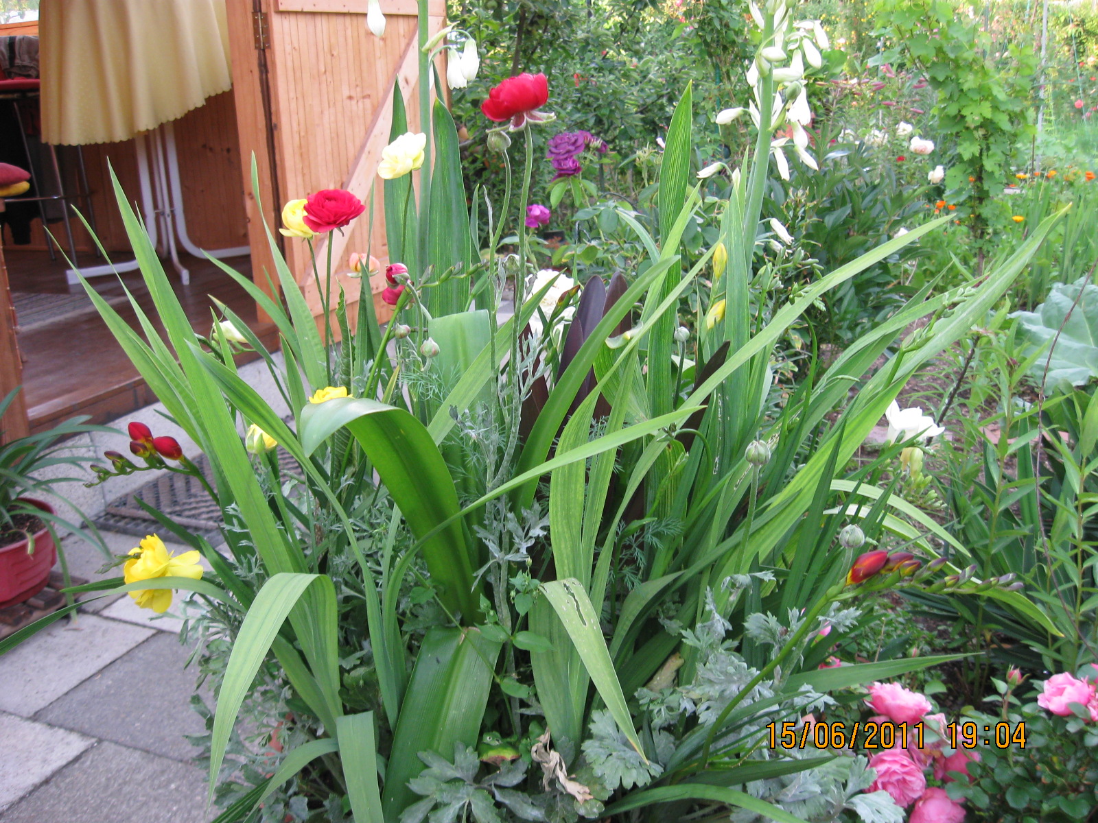 Vor einiger Zeit hat noch ein Portugiese bei mir geblüht, der bisher nur gewachsen ist. Es handelt sich um eine zweite Ornithogalum-Art, und zwar Ornithogalum narbonense. Auch hier sind die Blätter zur Blütezeit schon fast abgestorben. Das macht diese Pflanzen für mich attraktiv, das mag ich irgendwie.