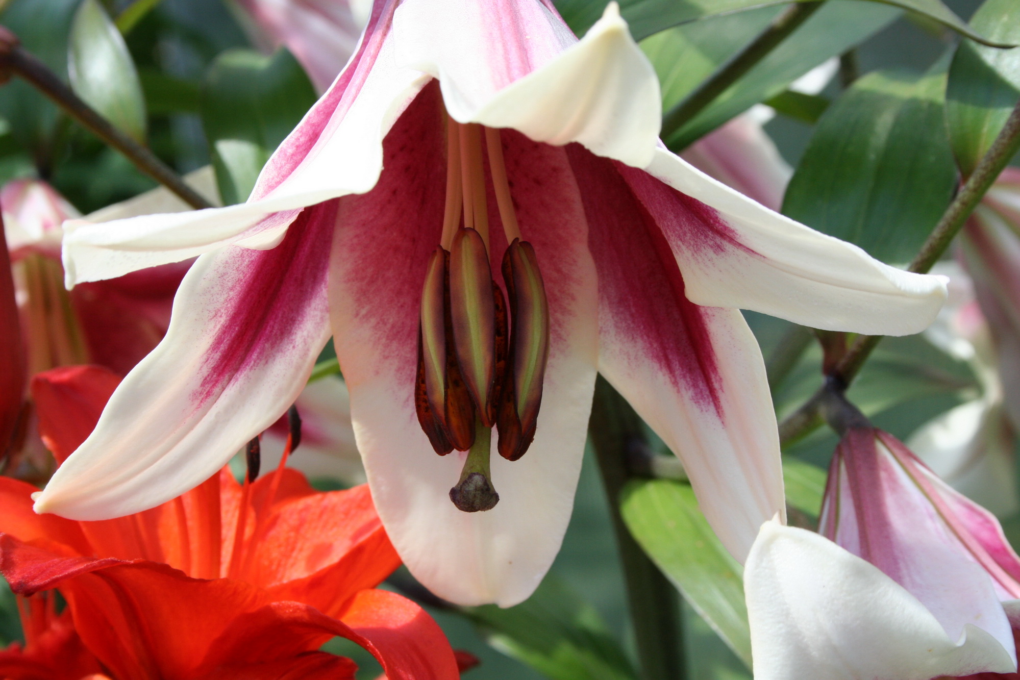 Eucomis bicolor, die Schopflilie. Dieses Jahr haben wir uns entschieden, die Knollen über den Sommer auszupflanzen, wodurch sie zwar etwas langsamer gewachsen sind, aber jetzt kommen schon die Blüten Irgendwie schauen sie so viel besser aus als in den Töpfen, da haben sie immer etwas "ungesund" gewirkt