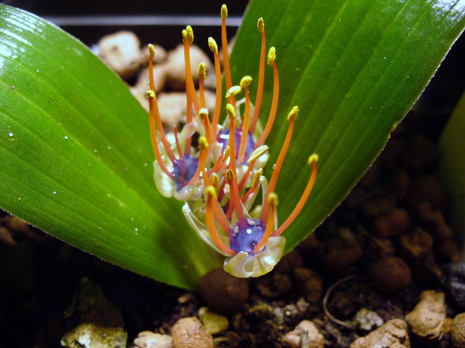 zwei meiner Bilder sind zwar leider historisch (die Zwiebeln sind im November 2007 in den Töpfen durchgefroren und waren dann Matsch ) aber um zu zeigen, was es so alles gibt, finde ich, zeige ich sie, sie haben nämlich damals auch in der 1. Dezemberwoche geblüht. Vor allem um die Daubenya zeyheri ist es sehr schade, denn diese habe ich unter falschem Namen (Neobakeria angustifolia) bekommen. D. zeyheri ist eine sehr seltene Südafrikanerin und auch selten in Kultur. Ich habe sie weiter nirgends gefunden, weder als Saat noch als Pflanze. Die andere ist Massonia depressa. Sicher eher skurril als schön, es gibt schönere Massonia-Arten, aber ich liebe sie alle.